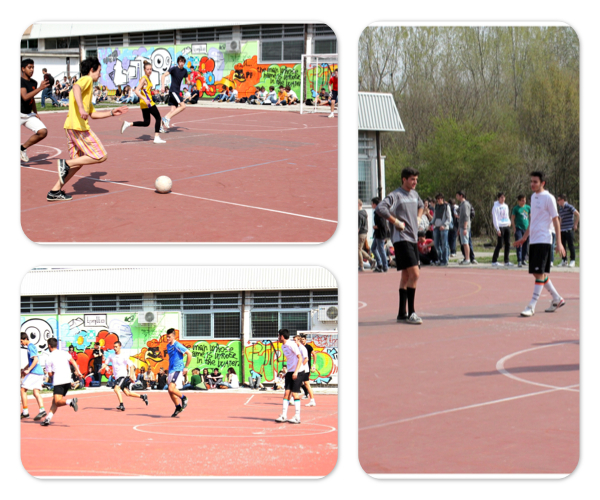 Sandro Zarpellon, 4A PNI e Gianluca Checchin, 5D PNI rinnovano la parete che si affaccia sul campo sportivo. “I graffiti preesistenti non erano né autorizzati, né buoni”…