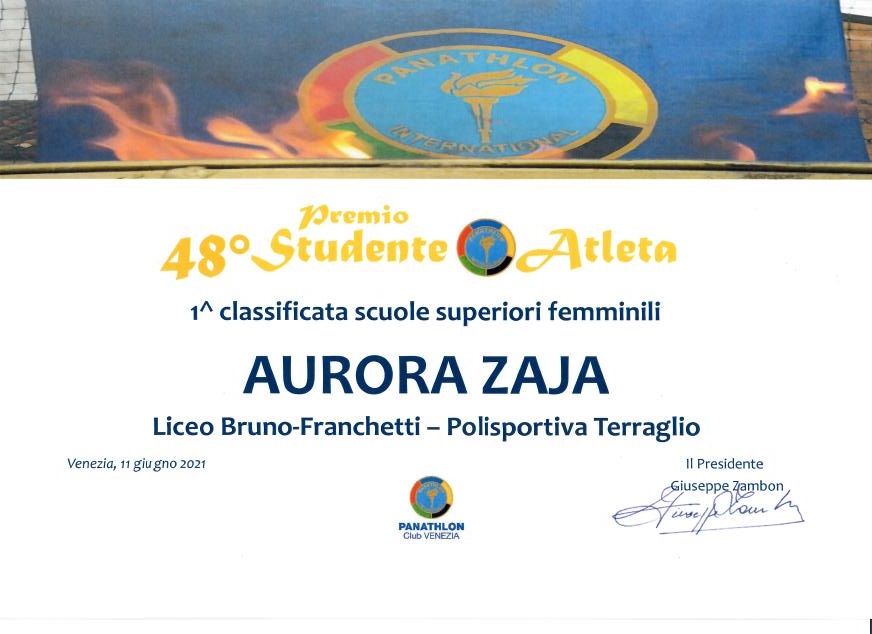Aurora Zaja, studentessa della classe 4C scienze applicate si è classificata 1^  nella categoria “Scuole superiori femminili”48° Premio Studente-Atleta 2020 promosso dal Panathlon Club Venezia, ottenendo una borsa di studio per l’impegno in ambito scolastico e sportivo (Danza Classica e Contemporanea).