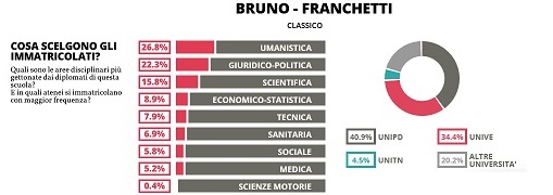 In particolare contiene i dati aggiornati sugli Atenei scelti dai nostri studenti per il proseguimento del loro percorso formativo; sulla base di questi dati (rappresentati nello schema qui sotto) si mettono a disposizione degli studenti alcuni link utili all’esplorazione dei portali degli Atenei in testa alle preferenze dei nostri ragazzi; essi rappresentano anche una traccia per la ricerca nei portali di altri Atenei.